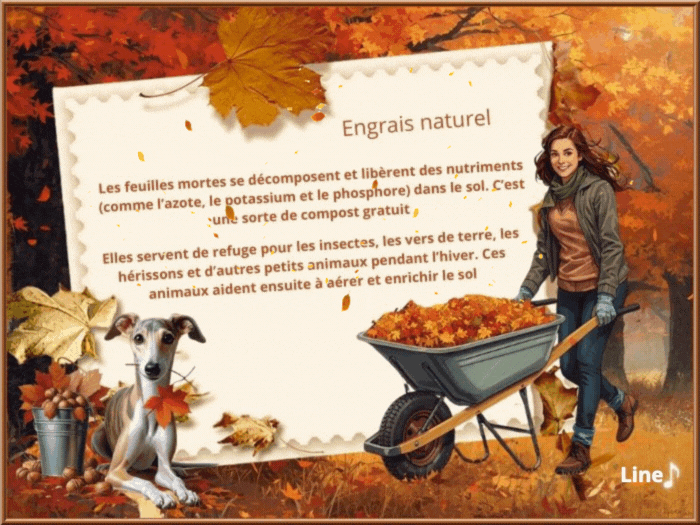 Les feuilles mortes se décomposent et libèrent des nutriments (comme l’azote, le potassium et le phosphore) dans le sol. C’est une sorte de compost gratuit !